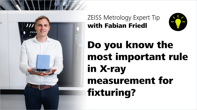 Kennen Sie die wichtigste Regel für Aufspannvorrichtungen bei Messungen mit CT- und Röntgensystemen? Wenn nicht, dann wird es Zeit! Unser Experte, Fabian Friedl, kennt die Regel und teilt sie mit Ihnen im aktuellen ZEISS Messtechnik Experten Tipp Video.