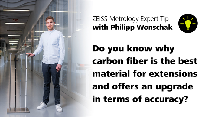 In diesem Video zeigt Ihnen unser Experte, Philipp Wonschak, wie Sie Ihre ZEISS Messmaschine in Bezug auf die Messgenauigkeit effizient aufrüsten können. Denn den größten Einfluss auf die Messgenauigkeit hat das Material, aus dem die Verlängerungen bestehen.